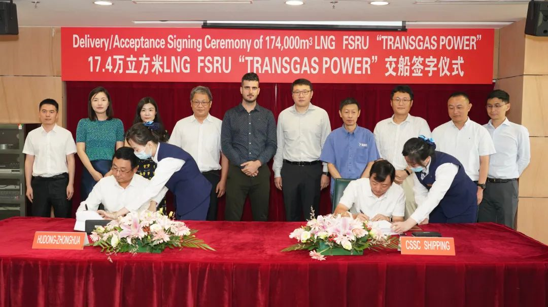 7月15日,沪东中华造船自主研发设计建造的中国首座17.4万立方米浮式液化天然气储存及再气化装置(LNG-FSRU)签字交付。这艘名叫“运输力量”号的LNG FSRU正式载入中国LNG全产业链族谱。