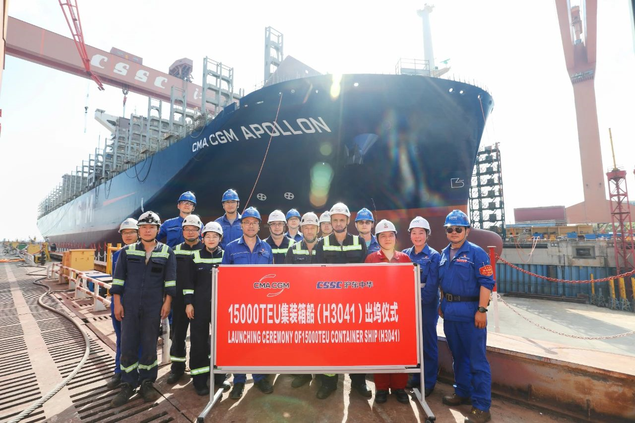 沪东中华造船15000TEU集装箱船4号船顺利出坞
