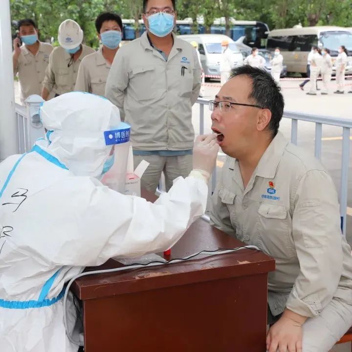 为确保有序、安全快速地完成本次检测,防疫工作组、各部门负责人、分包商负责人通力配合。以防出现安全“真空期”,安环部所有人员及志愿者顶着烈日在现场来回协调,引导3辆大巴来回20趟接送。