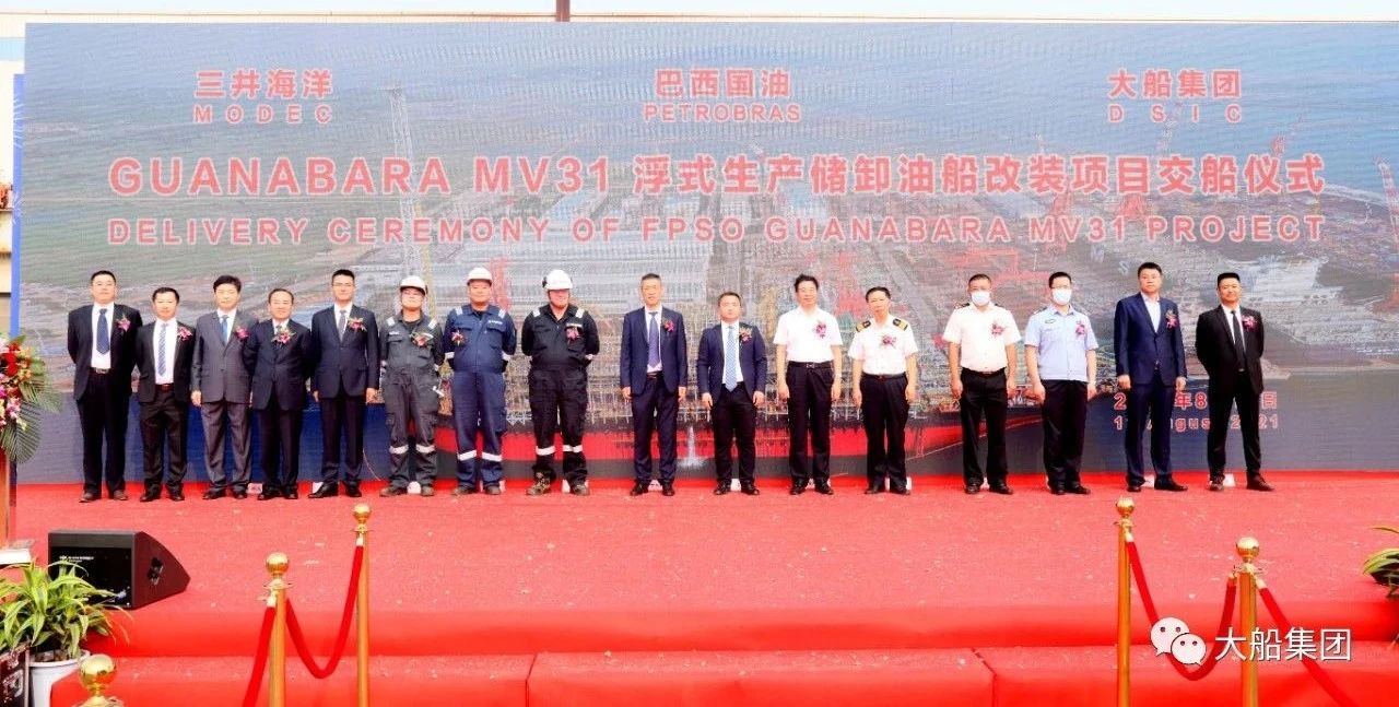 8月12日,中国船舶大船集团举行为新加坡MODEC公司改装的Guanabara MV31浮式生产储卸油船交船仪式。