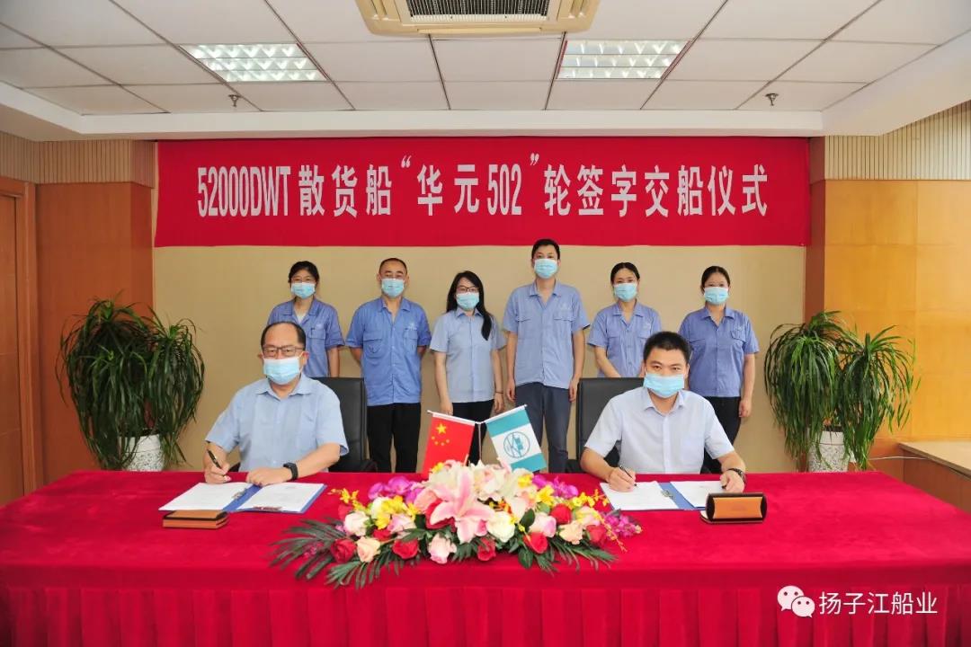 8月13日,扬子江船业集团子公司江苏新扬子造船有限公司为上海华元航运有限公司建造的第二艘52000吨内贸散货船 “华元502”轮顺利签字交付。