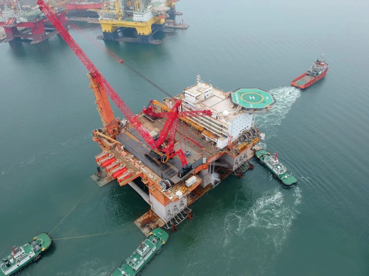 中集来福士风电安装平台改造项目交付离港