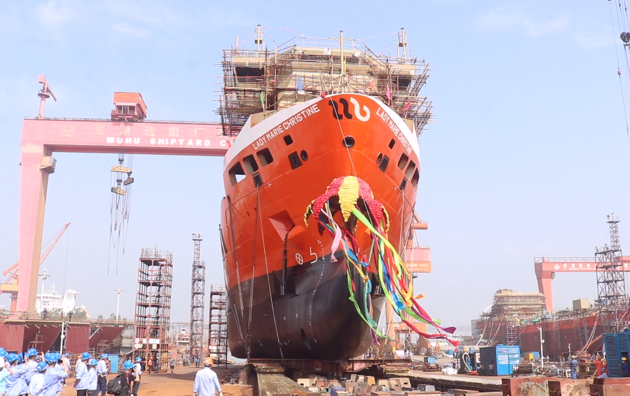 8月25日,芜湖造船厂为荷兰船东建造的5800吨级冰区加强多用途船顺利下水。这是该系列船型的首制船,船东Wijnne Barends公司、DNV船级社以及芜湖造船厂经营层共同见证下水盛况。