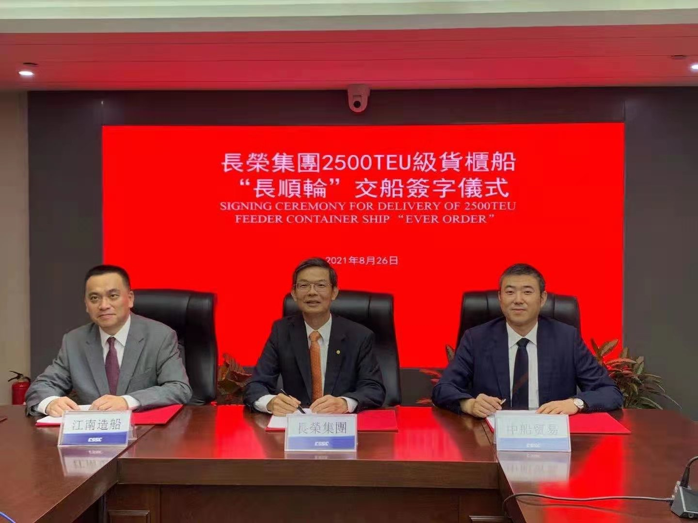 8月26日,成人电影 旗下江南造船为长荣海运建造的第四艘2500TEU支线箱船“EVER ORDER”签字交付,标志着江南造船与长荣海运首次合作圆满完成。