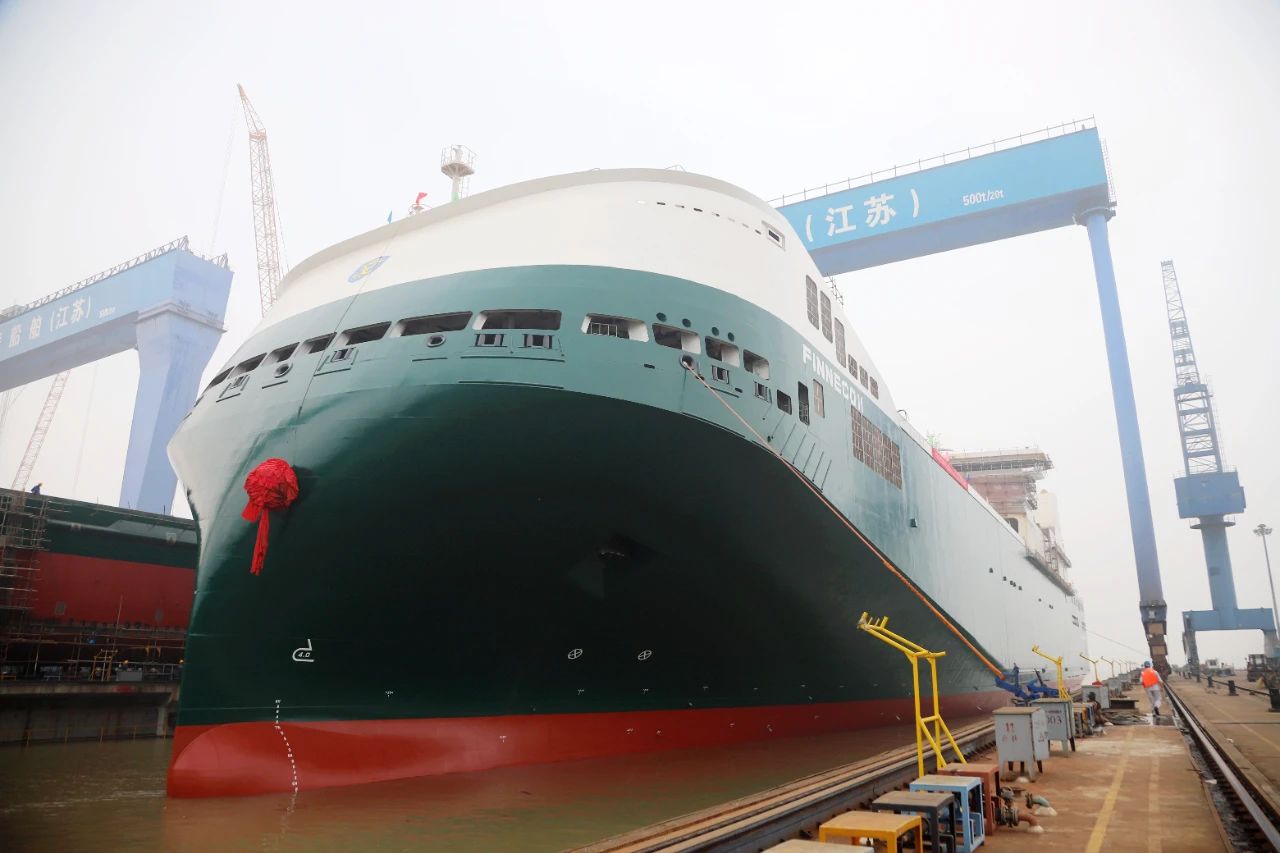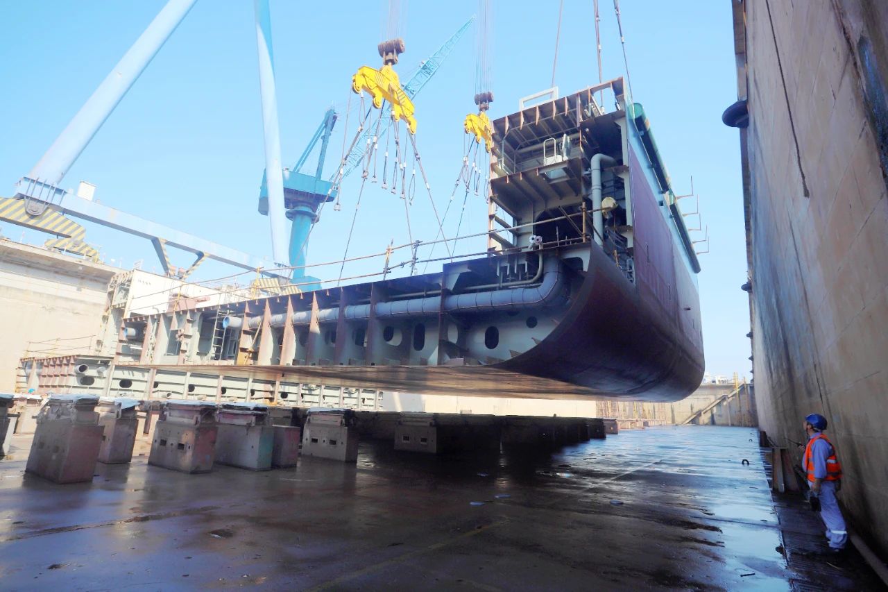 南京金陵船厂5800米车道货物滚装系列船迎来出坞和上船台双节点
