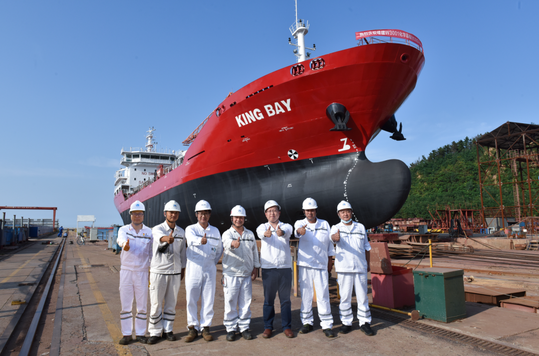 9月3日,威海金陵续建的首艘6500吨化学品船“KING BAY”下水。