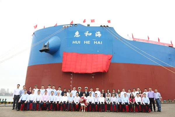 武船集团董事,北船重工党委副书记、总经理谷克超,中远海运散运副总经理陈延,中远海运发展总会计师林锋先后致辞。中远海运散运法务与风险管理部总经理陈文穗担任新船教母,将其命名为“惠和海”轮,并在林锋、陈延、谷克超的陪同下为其砍缆。