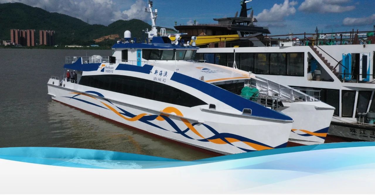 近日,澳龙船艇为珠海九洲蓝色干线投资控股有限公司(以下简称:九洲蓝色干线)建造的一艘铝合金双体高速客船—“新海澳”轮成功交付。