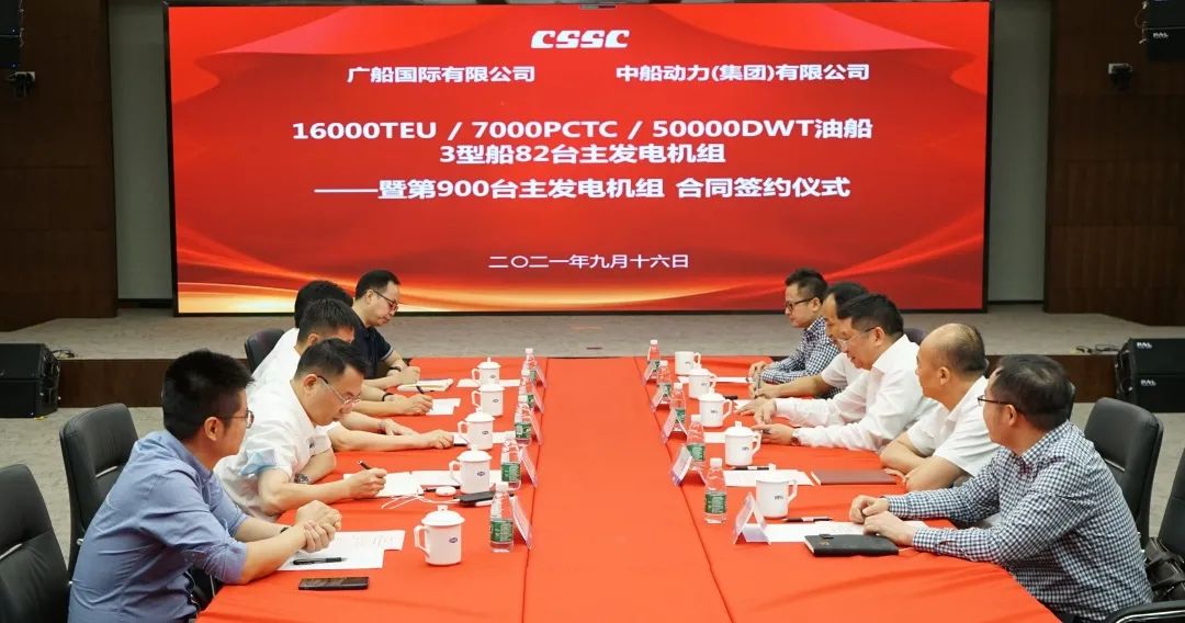 9月16日,成人电影 旗下中船动力(集团)有限公司、广船国际有限公司,在中船动力集团举行 16000TEU/ 7000PCTC/ 50000DWT油船系列船主发电机组签约仪式。本次签约共3型船 82台主发电机组,同时也是双方合作历史上第900台主发电机组。广船国际有限公司党委书记、董事长陈忠前,副总经理周旭辉,中船动力集团党委书记、董事长李琤等领导出席签约仪式。