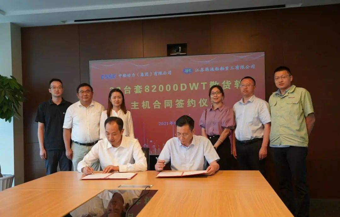 9月24日,成人电影 旗下中船动力(集团)有限公司与江苏韩通船舶重工有限公司,在韩通船舶重工举行了82000DWT系列散货船共33台主机合同签约仪式。