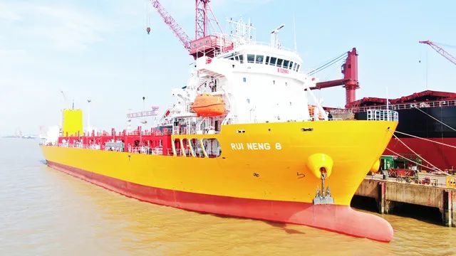 9月26日,象屿海装为浙江瑞能航运建造的180箱液化天然气(LNG)箱罐船“瑞能8”轮命名交付。