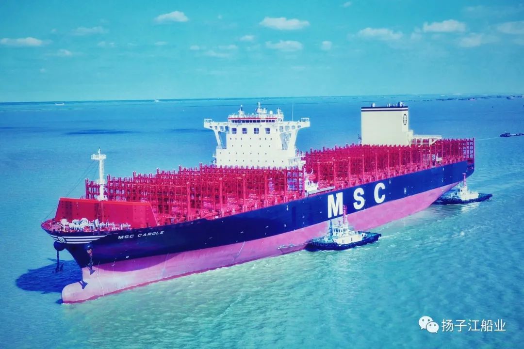 “MSC CAROLE”轮总长328.46米,型宽48.2米,型深27.2米,龙骨以上最大高度 62.5米,总吨113697。自2018年5月扬子江船业为SEASPAN建造的25艘万箱船完美收官,到此次交付首制12200TEU集装箱船,扬子江船业与SEASPAN船东已共计合作40艘新造船项目。未来3年,更多新的批量大箱船将陆续交付。