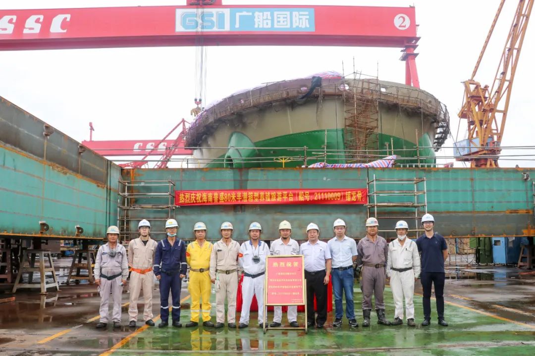 广船国际80米半潜箱型养殖旅游平台举行龙骨铺设仪式