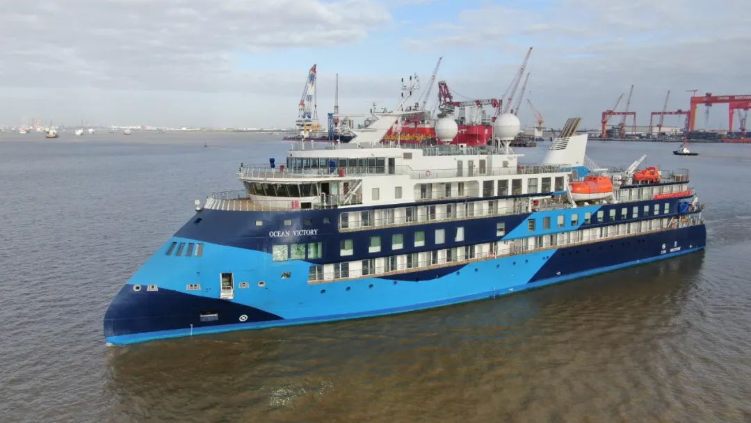 10月17日,招商局工业集团招商局重工(江苏)为美国探险邮轮船东SunStone Ships公司建造的国产首型系列极地探险邮轮3号船“海洋胜利”号(Ocean Victory)交付。