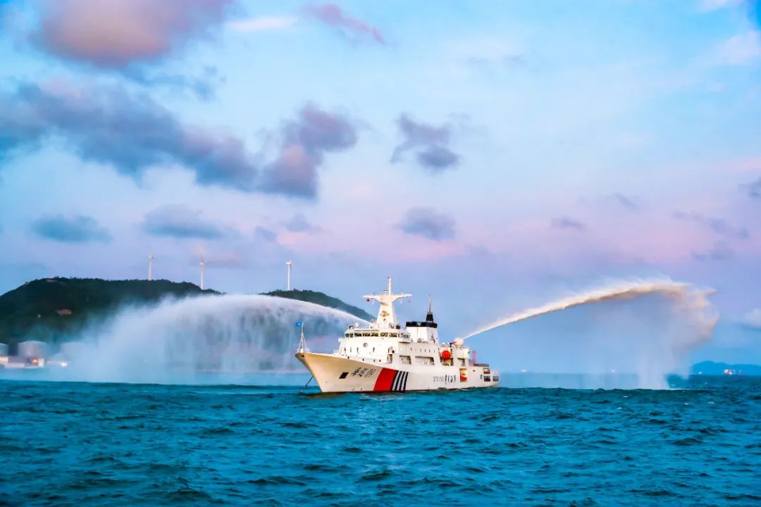该船配备的智能执法水炮,不论白天黑夜,都可以实现对目标的自动跟踪、锁定、发射等功能。