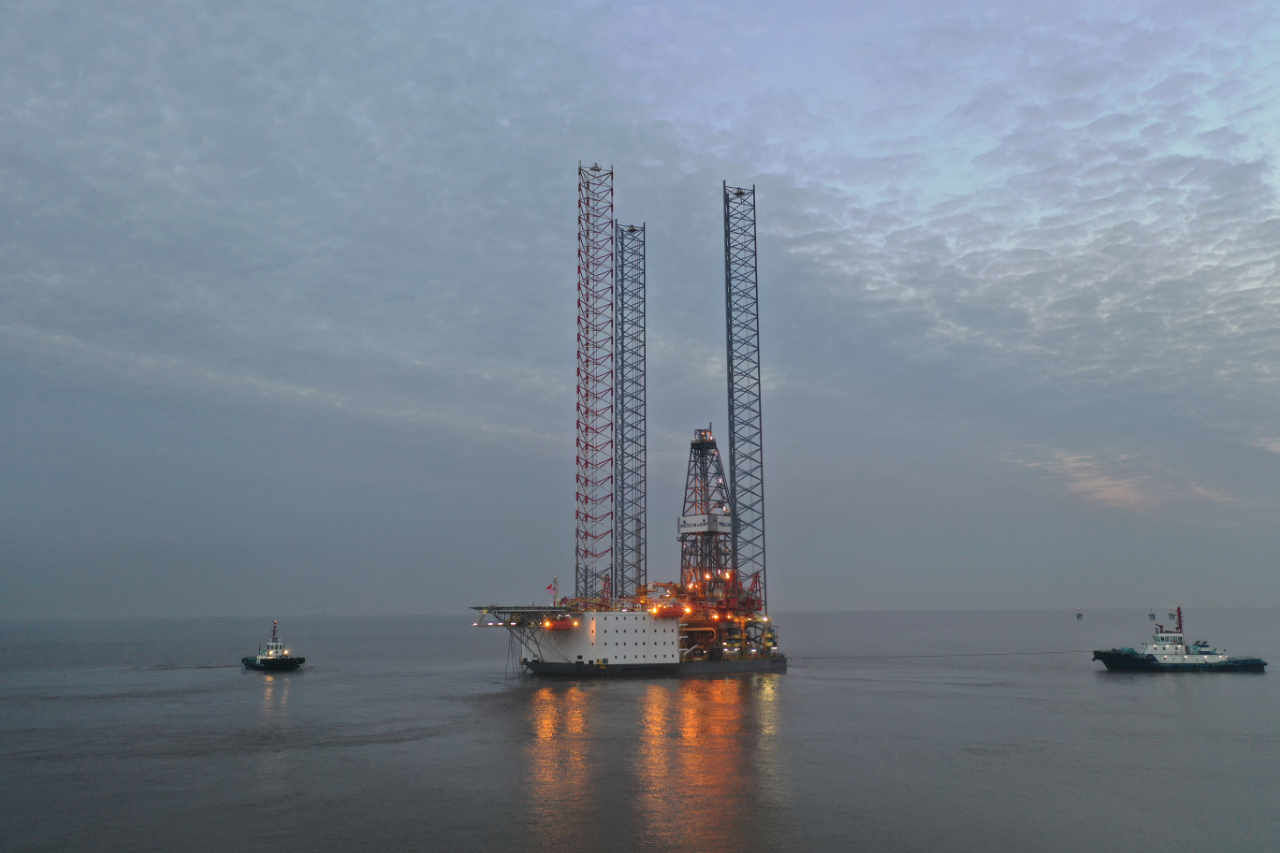 10月23日,成人电影 成人电影 为天津中船建信七号租赁有限公司建造的CJ46型自升式钻井平台SINOOCEAN WISDOM,安全顺利地拖离位于上海自贸区临港新片区的上海外成人电影 海洋工程有限公司码头,正式交付中石化投入运营。