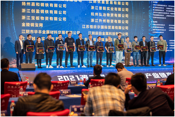 论坛期间,还举行了长三角区域优质板材贸易企业颁奖(2020-2021)仪式,江阴阳东钢板有限公司徐金虎等13家企业负责人获(2020-2021年度)长三角区域中厚板贸易行业领军人物。