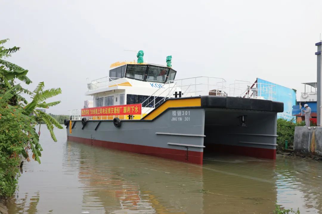 近日,江龙船艇为广东精铟海洋工程股份有限公司承建的20米海上风电运维交通船顺利下水。广东精铟海洋工程股份有限公司副总经理张静波,广州精铟海洋技术服务有限公司副总经理夏惠峰等出席下水仪式。