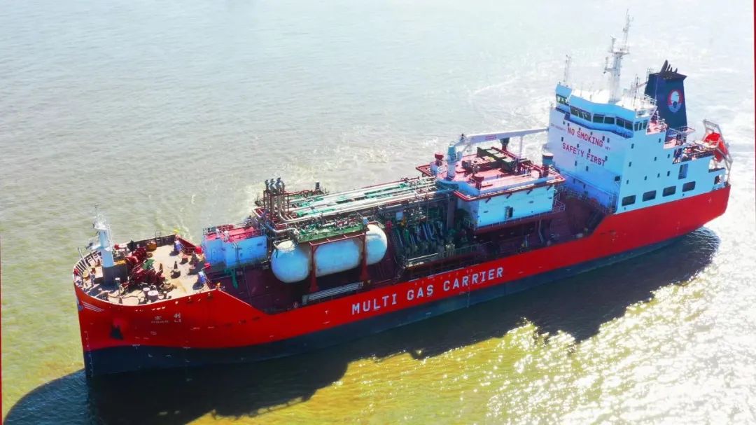 此次交付的“宏利”轮总长119.6米,型宽19.8米,型深11.3米,约7700载重吨,能够承担市场上常见的液化天然气(LNG)、液化乙烯(LEG)和液化石油气(LPG)等20余种货物,应用场景十分广泛。该船液货系统分为两组,同时可处理两种货物,装载灵活、适应性强。