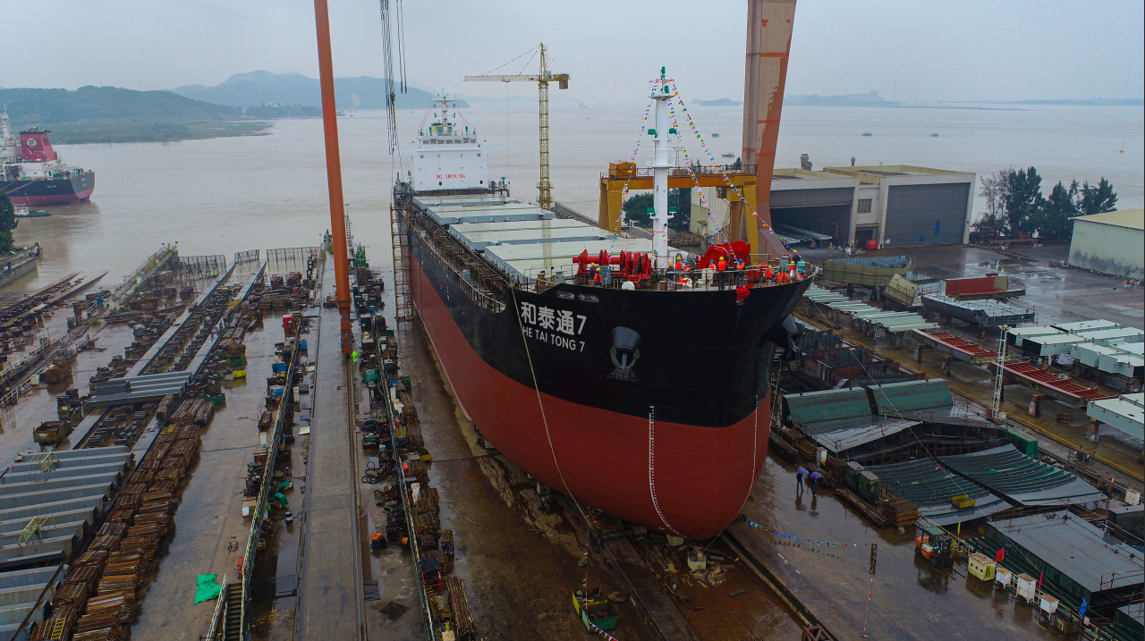 1月5日,东南造船承建的22500吨散货船“和泰通7”号顺利下水。