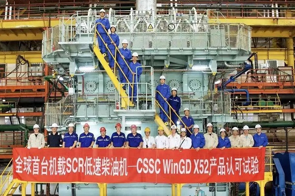 旗下中船动力集团自主研发、大连船柴建造的全球首台机载SCR(选择性催化还原系统)船用低速机CSSC WinGD X52正式向全球发布。