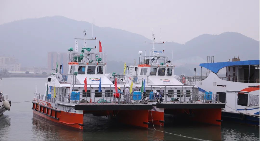 近日,澳龙船艇承建的福建海电运维科技有限责任公司6艘20米双体铝合金运维系列船第二艘船顺利下水。福建海电运维科技有限公司副总经理巫占钟、澳龙船艇总经理王广荣等出席下水仪式。