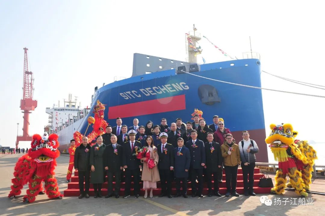 1月12日,新扬子造船为海丰国际建造的第七艘2400TEU集装箱船“SITC DECHENG”轮命名交付。海丰国际执行董事、海丰航运集团总裁薛明元先生,扬子江船业集团副总经理杜成忠先生、副总经理张涛先生、副总经理周科伟先生以及海丰国际部分投资者代表共同出席了该仪式。