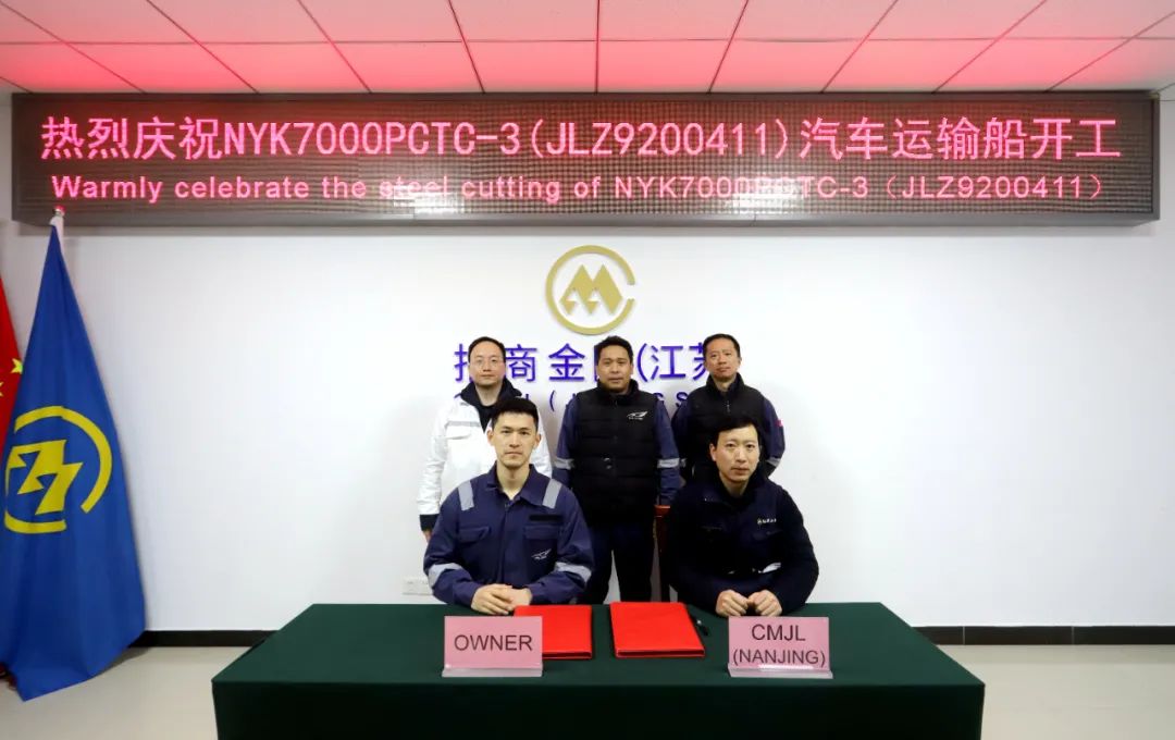 2月10日,招商工业南京金陵船厂为日本邮船(NYK)集团建造的第三艘7000车位液化天然气汽车运输船开工。船东驻厂代表Koyama先生、DNV船级社驻厂代表及南京金陵项目组等有关人员参加了开工仪式。