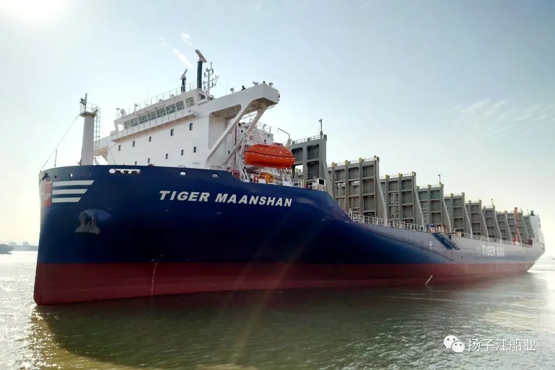 2月14日,扬子江船业集团与老虎燃气联合研发,由新扬子造船建造的扬子江船业集团第二艘700箱级罐箱甲板船“TIGER MAANSHAN”轮顺利交付。