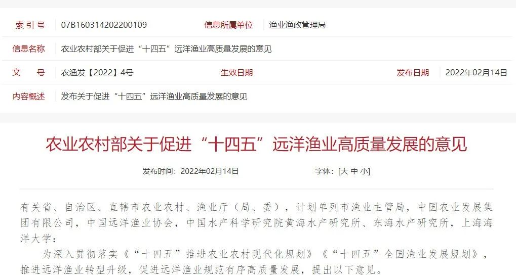 “十四五”远洋渔业高质量发展意见发布 渔船发展迎来新机遇