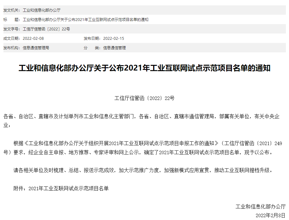 江苏自动化研究所项目入选2021年工业互联网试点示范项目名单