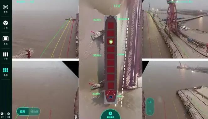 对靠泊感知模块内摄像机所采集的图像进行畸变矫正、视频拼接,用视觉重构技术,重建船舶周围的实时3D场景,并进行任意视角的可视化展现、靠离泊速度的显示、语音提示预警等,完美实现船端、岸基的实时共享。
