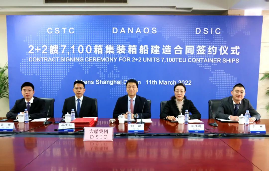 3月11日,大船集团联合中船贸易成功承接希腊船东Danaos公司2+2艘7100TEU集装箱船新造项目,各方代表以云签约的形式签署造船合同。