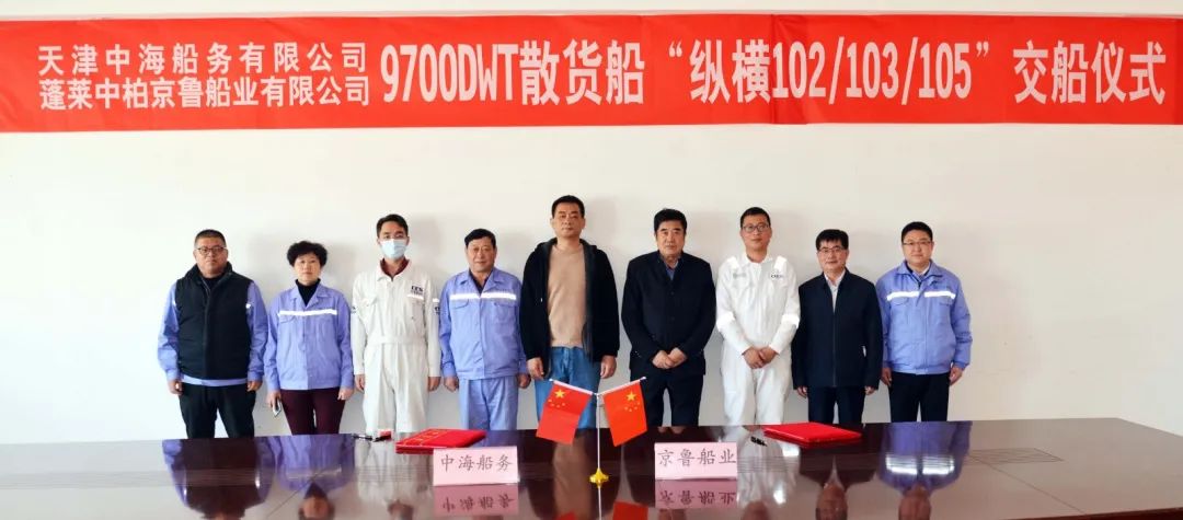 近日,京鲁船业为天津中海船务有限公司建造的3艘9700吨散货船同日交付。