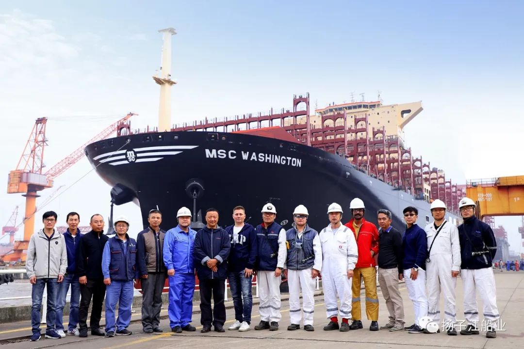 3月24日,由扬子鑫福建造目前扬子江船业集团建成完工的最大集装箱船14000TEU双燃料集装箱船“MSC WASHINGTON”轮云交付。TIGER CONTAINER ONE LIMITED董事Mark W Hilton与扬子江船业集团副总经理张涛、扬子鑫福总经理杨雪彦等通过视频交流方式,完成“MSC WASHINGTON”轮云交付。