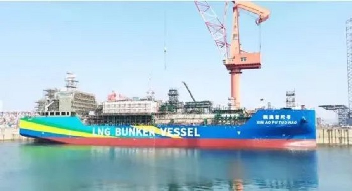 大船集团承建了首艘由国内船厂总包建造的、全球最大C型罐LNG燃料加注船。