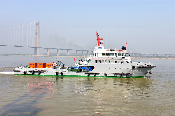2022年4月7日,由江苏省镇江船厂(集团)公司为宁波油港轮驳有限公司建造的53米多功能浮油回收船——“甬港联防一号”完工交付,顺利启航。