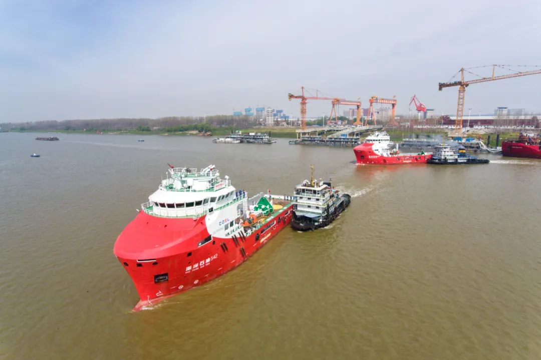 4月4日,由中国船舶武船集团为中海油田服务股份有限公司建造的4000马力LNG动力油田守护供应船“海洋石油542” “海洋石油547”一同顺利离厂。