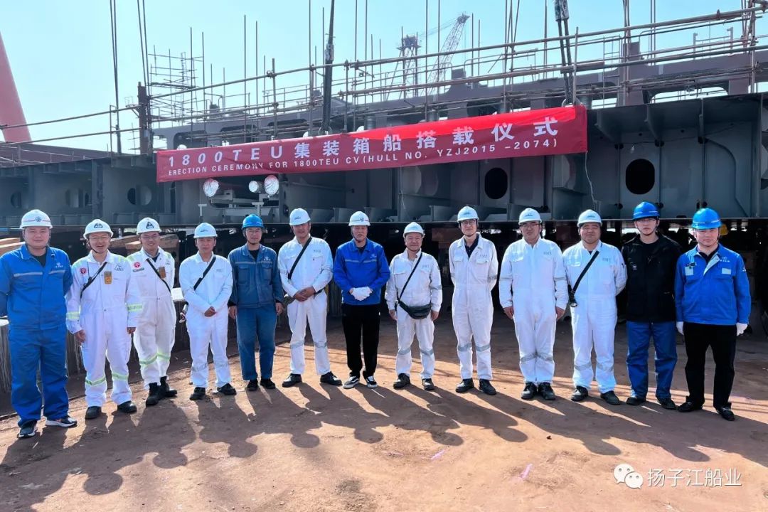 4月8日,扬子江船业为瑞洋海运建造的第二艘1800TEU集装箱船上船台搭载,该船船台周期计划为50天。