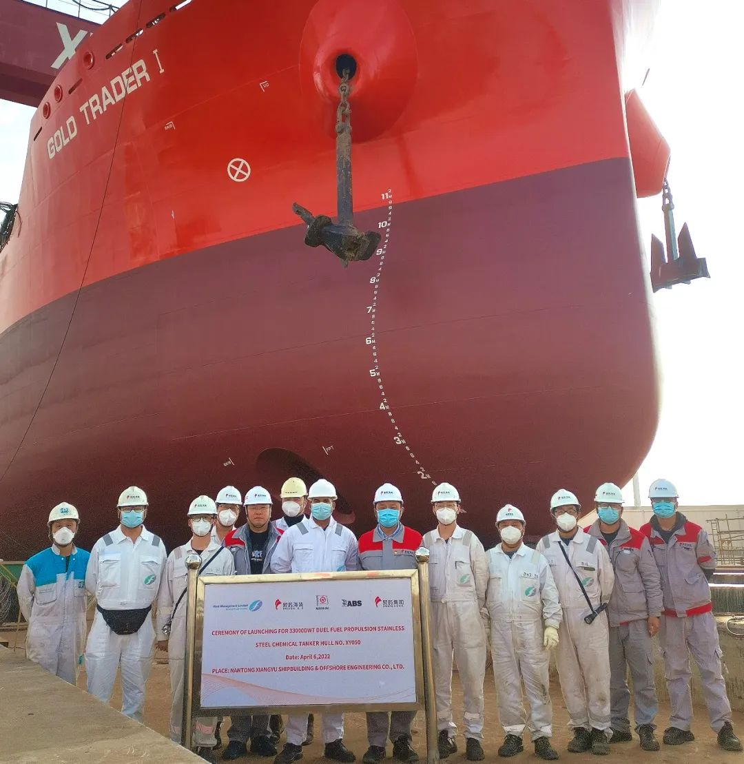 回顾建造历史,从船台到水下系泊调试,疫情带来了很大的影响,好在建造团队齐心协力,各方目标一致,有力保证了生产,顺利按期完成了试航节点,并且一次油气试航成功,给后续船双燃料的调试积累了经验。试航回厂后仅用17天完成了22个液货舱的酸洗钝化及意见消除,获得了船东高度赞叹,顺利交船。这也是象屿海装两个月内交付的第二条双燃料不锈钢化学品船。