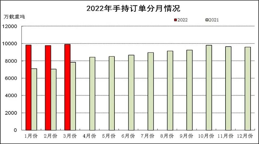 1~3月,全国造船完工961万载重吨,同比下降1.9%。承接新船订单993万载重吨,同比下降42.3%。3月底,手持船舶订单9910万载重吨,同比增长26.3%。