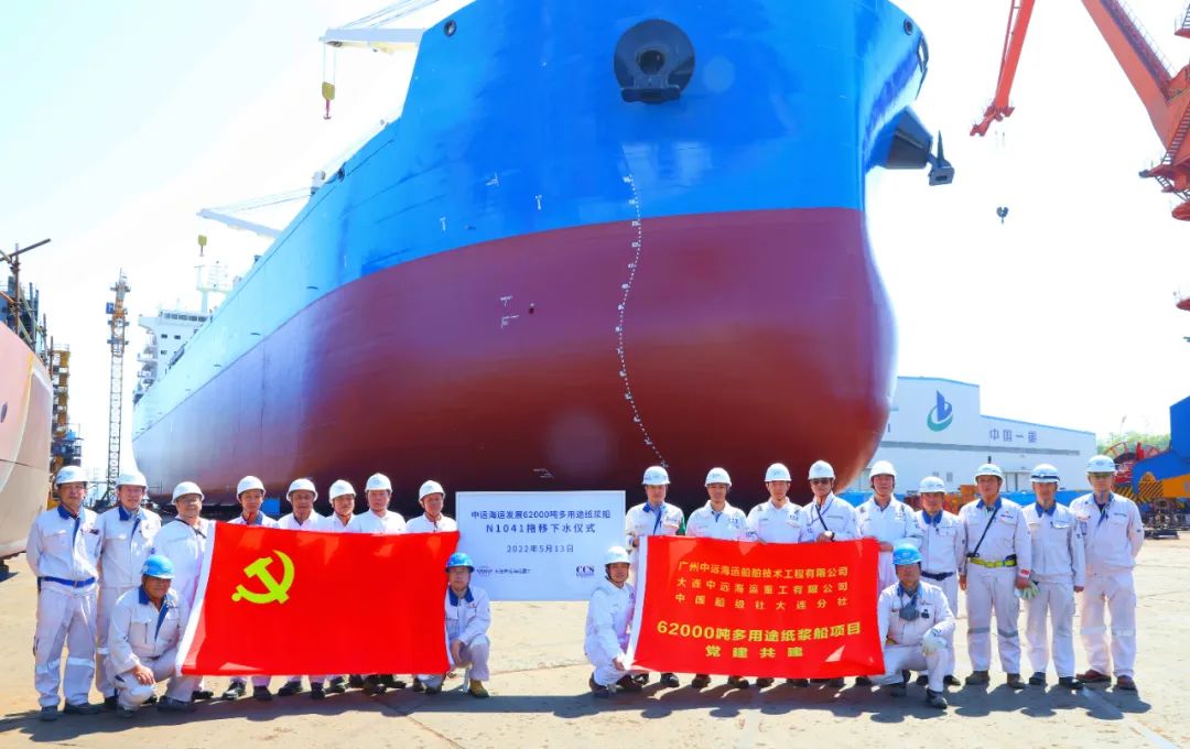 5月13日,大连中远海运重工建造的62000吨多用途纸浆船完成船台阶段安装、调试工程,顺利拖移。该船是大连中远海运重工承建的62K系列的第十五条船,该船型已成为公司较为成熟的系列特种船产品。