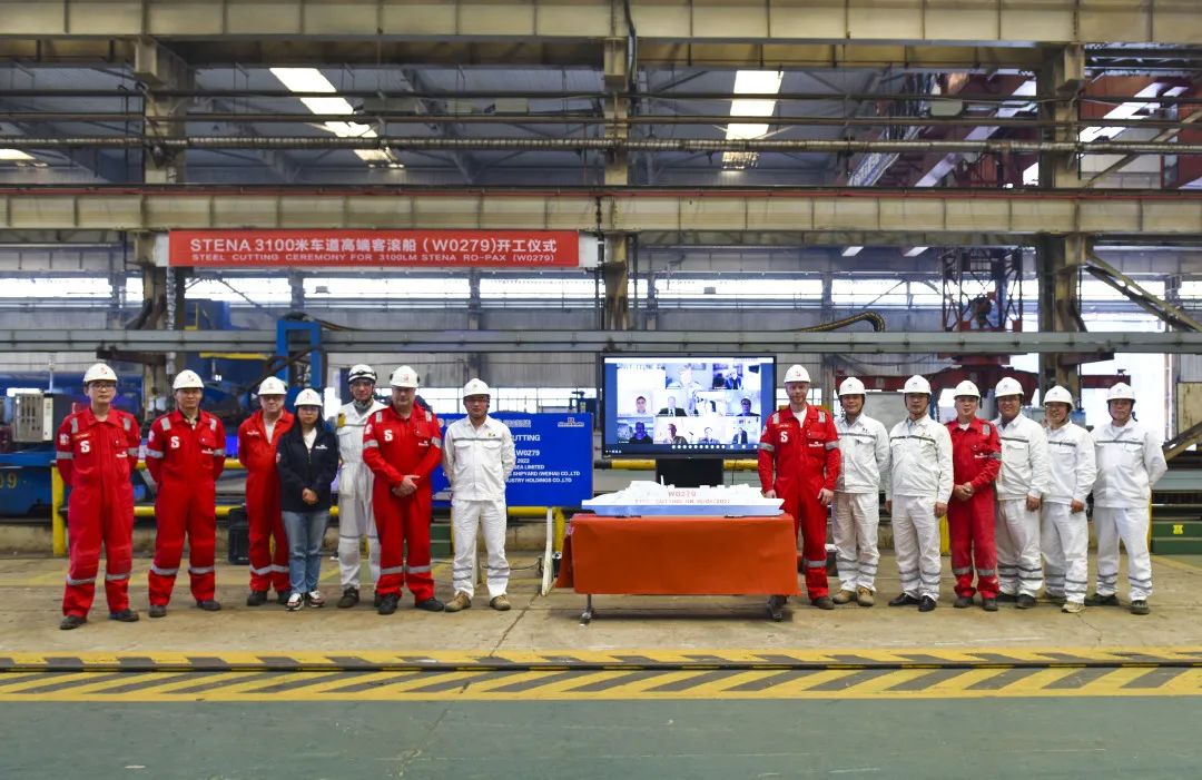5月16日,威海金陵举行为stena 公司建造的第10艘3100米车道高端客滚船开工仪式。船东建造代表Jonas Melin先生,船级社代表Alexey Rybinskiy先生,公司党委书记、总经理郑和辉,副总经理倪维松,总工程师欧书博以及部分项目组成员参加仪式。