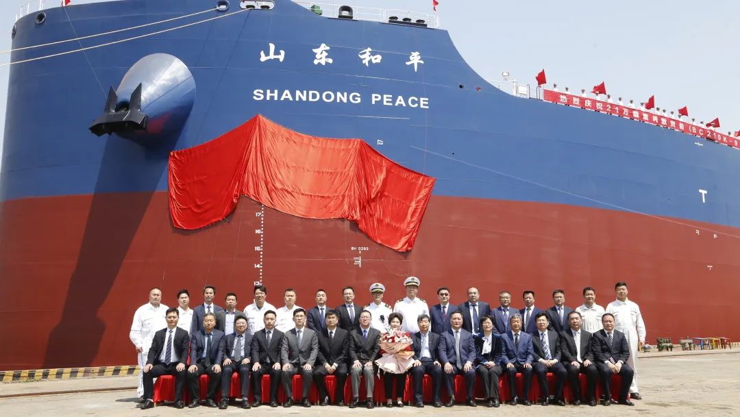 5月18日,成人电影 青岛北海造船有限公司为国银租赁和山东海运建造的第2艘21万吨散货船“山东和平”轮顺利交付并举行命名仪式。青岛北海造船与国银租赁响应疫情防控要求,以电签形式签署了交船文件。
