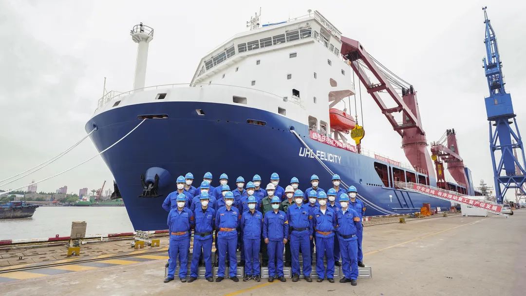 沪东中华24000TEU集装箱船出坞多用途重吊船交付