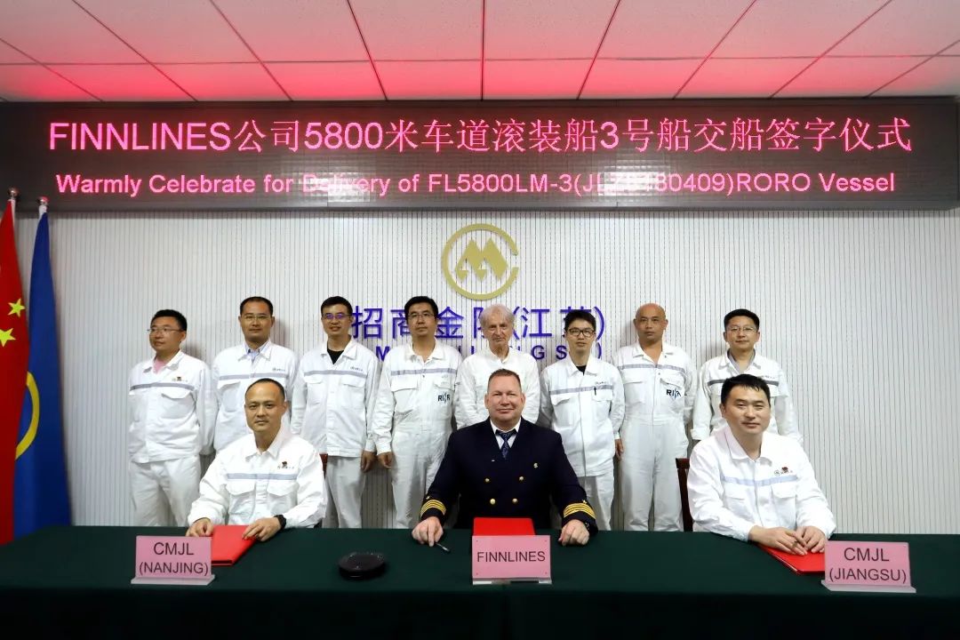 6月6日,招商工业南京金陵船厂为意大利Grimaldi集团旗下Finnlines Plc公司建造的第三艘5800米车道货物滚装船顺利交付,该系列船建造项目获得圆满收官。