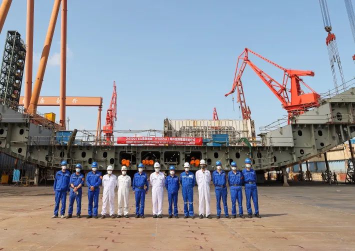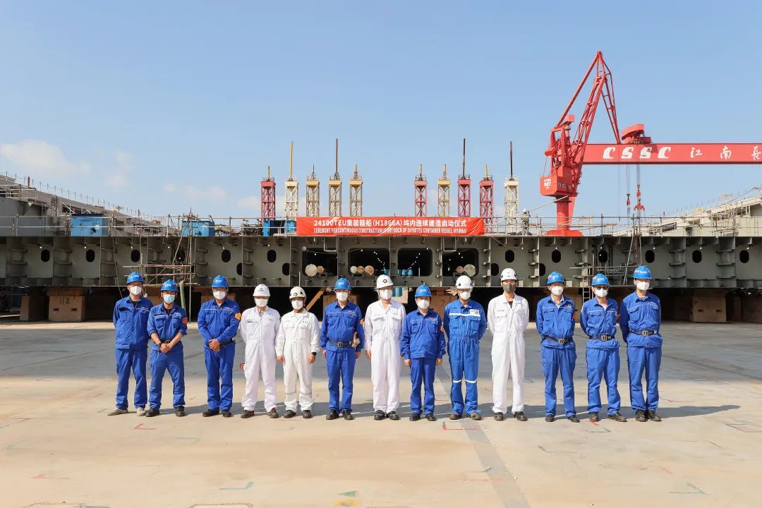 公司总经理、长兴造船董事长陈军,长兴造船副总经理刘学东、左德权和船东船检出席入坞仪式。此次入坞的是地中海航运公司的2号、3号船。目前,24000TEU超大型集装箱船坞内建造4艘,码头在建2艘,“沪东型”全球最大箱船项目建造已进入全面提速阶段。