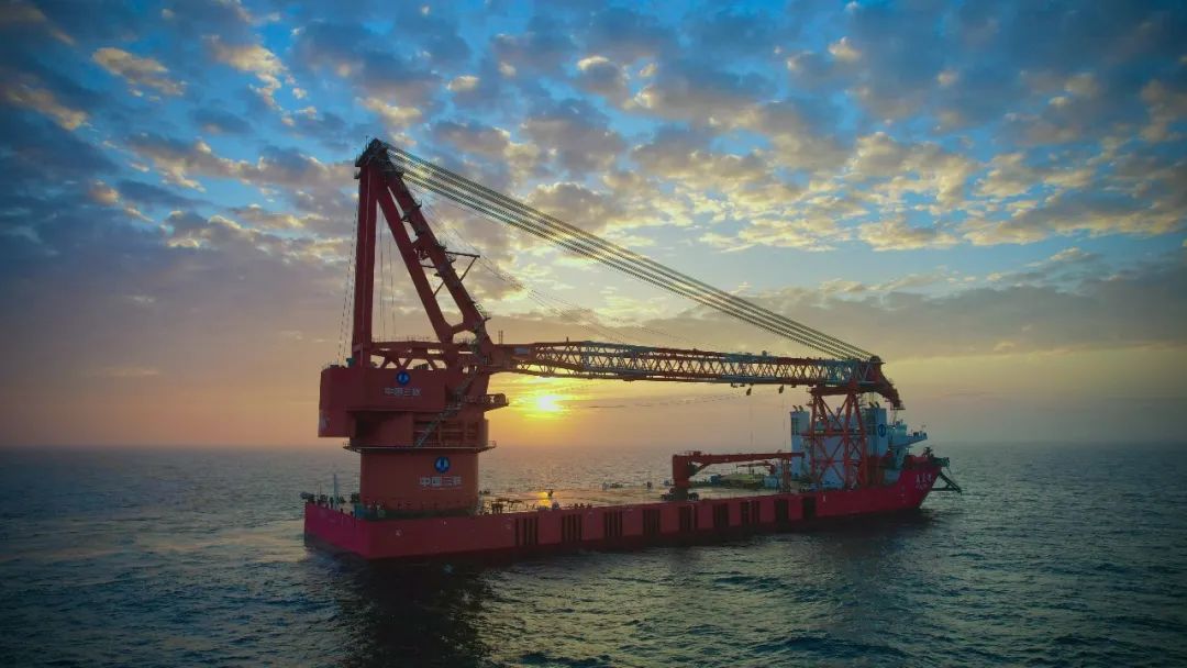 该船是招商工业海门基地承建的一艘运输+施工的一体化风电施工船。船舶主甲板设置一台全回转变幅式起重机,最大起重量3000吨,全回转起重能力为2400吨。同时本船配置有八点锚泊定位以及DP2动力定位系统。建成后主要用于10MW及以上机组单桩,导管架等多种基础施工,可装载3600KJ等级打桩设备进行施工作业。同时单船可完成港口装载,海上运输,吊装及打桩等主要工序,可延长深远海风电场施工气象窗口期,有效降低工程建设成本。
