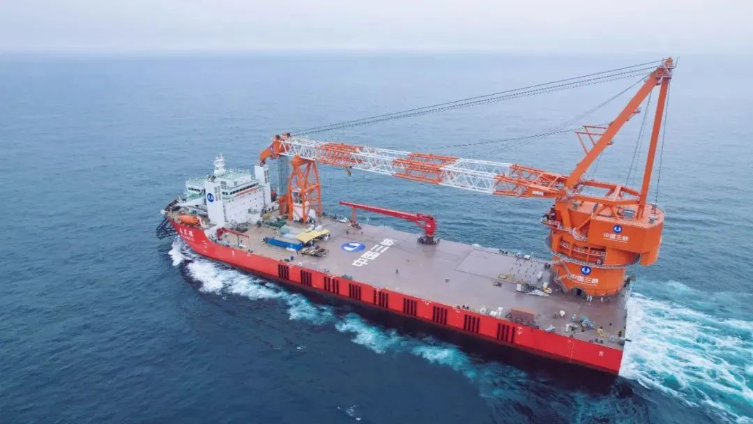 3000吨全回转起重船“乌东德”号是国内首艘“运输+起重”一体化海上风电施工船,是集深远海风电基础运输和起吊施工为一体的专业化风电施工船机。该船总长182米,型宽46米,型深15米,甲板开敞面积6200平方米、装载能力超1万吨,每次出海作业最多可携带4套2000吨级风机基础,运输能力相当于一艘3万吨级的甲板运输船。该船最大起重量可达3000吨,可满足10兆瓦及以上海上风电基础运输及安装需求,单船就可完成港口装载、海上运输、吊装及打桩等主要工序,功能齐全、作业效率高,可有效降低工程建设成本,满足海洋工程施工作业的高行业标准。