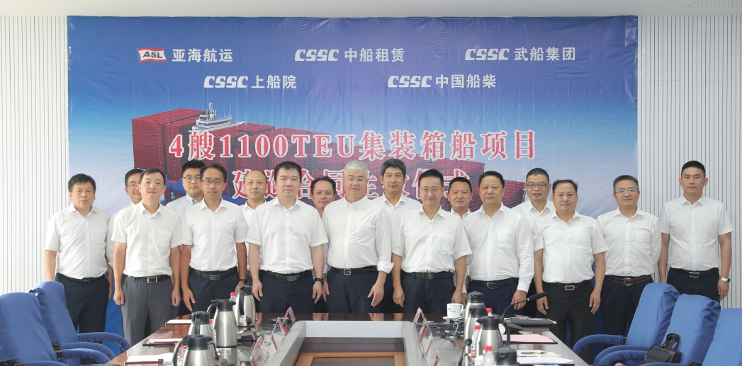 7月7日,中国船舶武船与CA SHIPPING(中船租赁和亚海航运成立的合资公司)签署的4艘1100TEU集装箱船项目合同生效仪式在武船总部举行。这是公司继此前交付的2艘700TEU集装箱船后承接的又一支线集装箱船订单,为公司深耕支线集装箱船市场,实现批量化、专业化建造奠定坚实基础。
